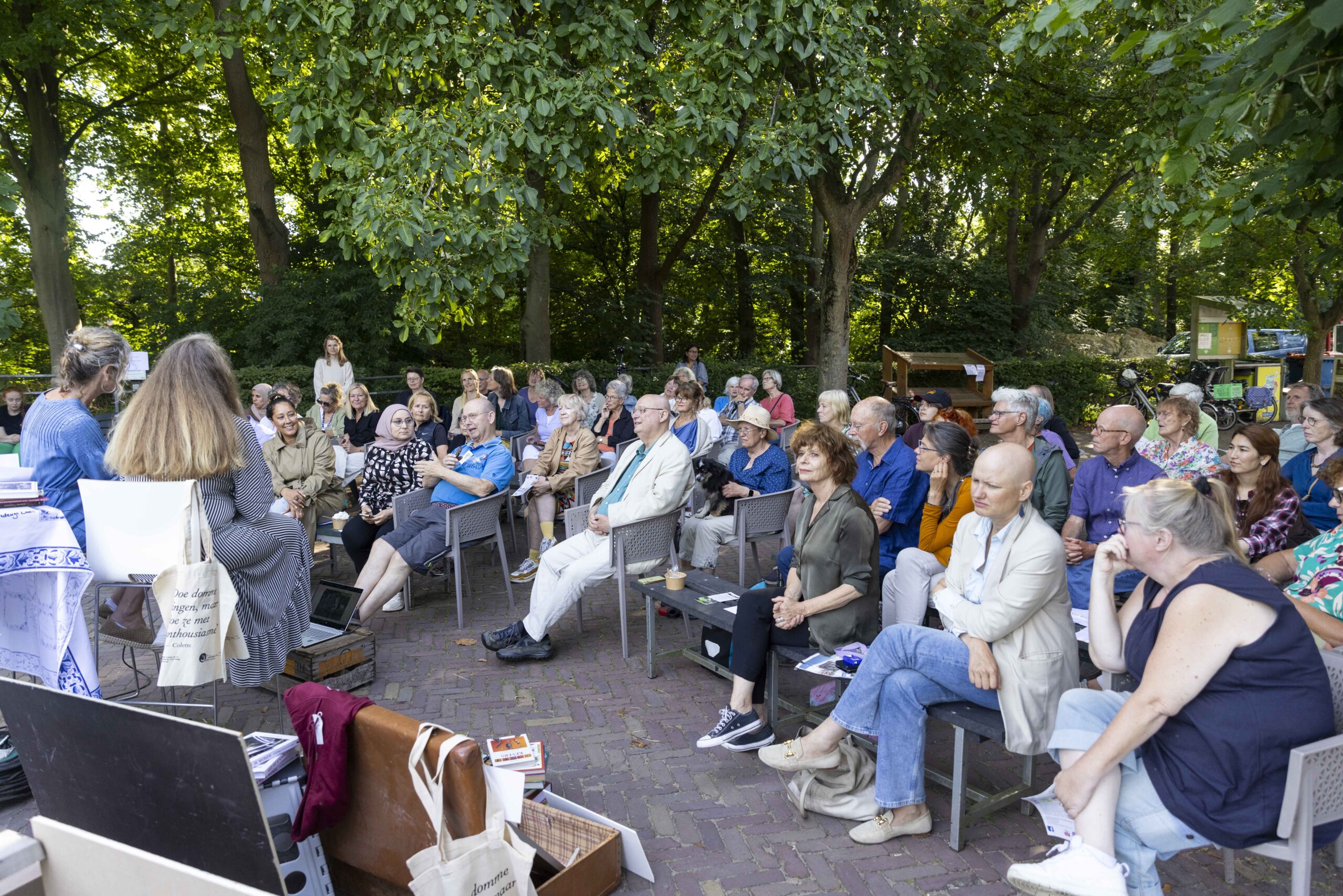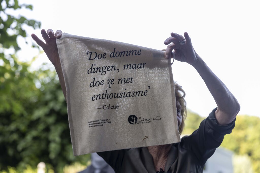 Daarna spraken we met Jeannette van Zijl over de redding van Antiquariaat Colette & Co in Duinoord. Wat begon als een actie om een geliefde boekwinkel te behouden, groeide uit tot Colette & Co: een non-profit buurtboekhandel gerund door vrijwilligers, schrijvers en buurtbewoners. Niet alleen de winkel werd gered – ook de straat bleef een plek voor ontmoeting en inspiratie. Hun motto: Doe domme dingen, maar doe ze met enthousiasme! (een quote van Colette).