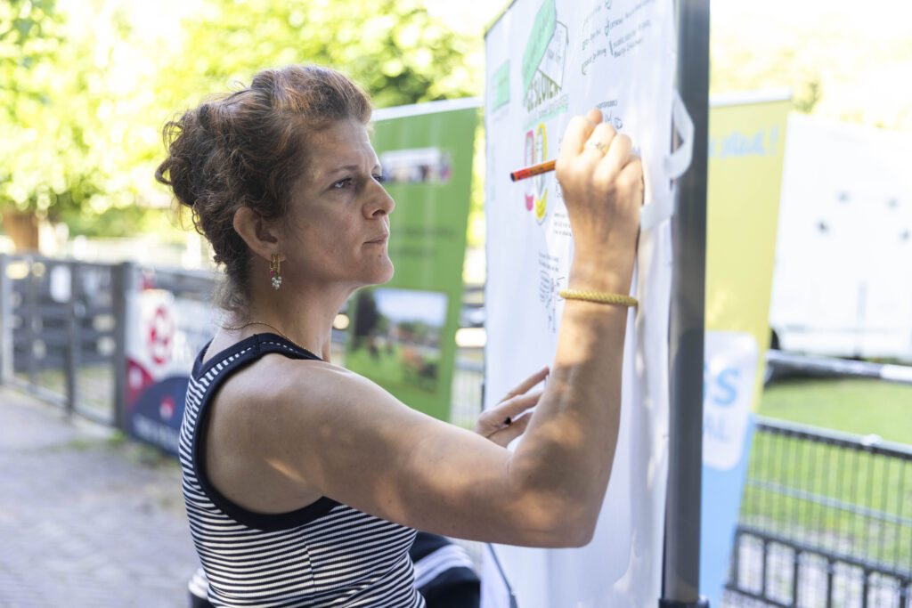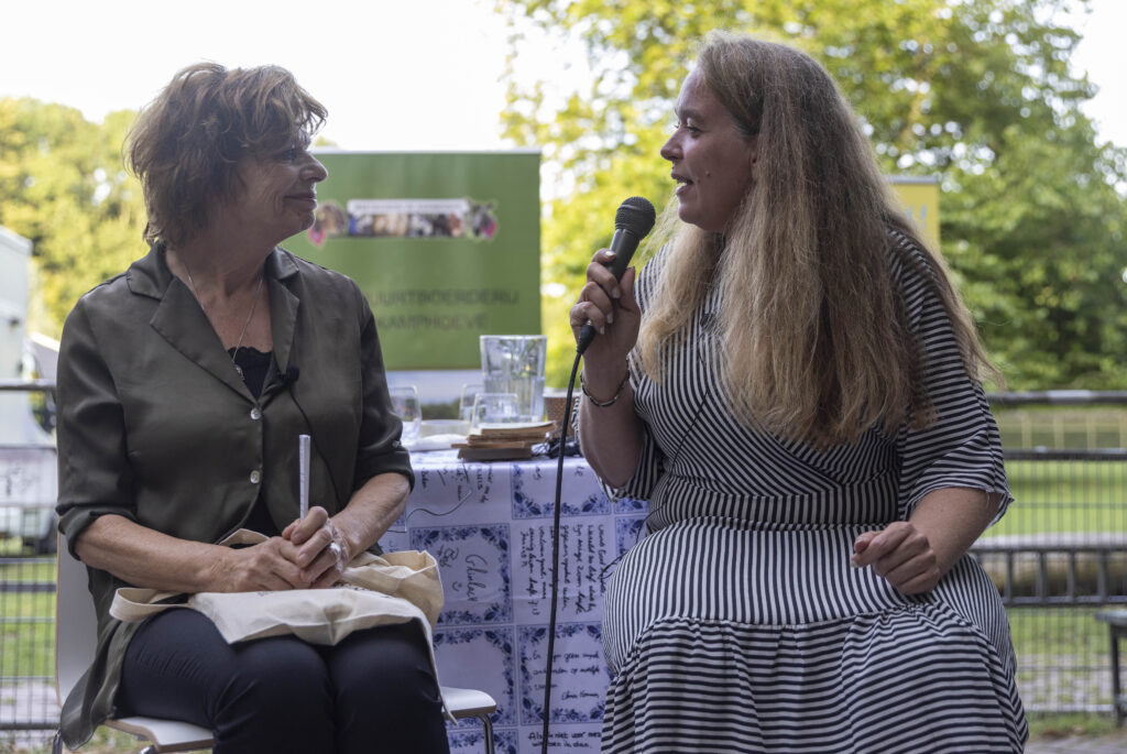 Tijdens twee persoonlijke gesprekken doken we in inspirerende verhalen van verzet, verbeelding en verbondenheid. Jennifer Hooglander vertelde hoe De Nijkamphoeve, ooit met sluiting bedreigd, uitgroeide tot een levendige boerderij en ontmoetingsplek. Inmiddels draaien er zo’n 200 vrijwilligers mee, is er een theehuis, worden er boerderijlessen gegeven en is het een belangrijke plek voor dagbesteding en buurtactiviteiten. Ook vertelde Jennifer wat de boerderij voor haar heeft betekend; een plek waar mensen een kans krijgen, onder wat voor omstandigheden dan ook, en dieren onvoorwaardelijk mogen wonen en oud mogen worden.