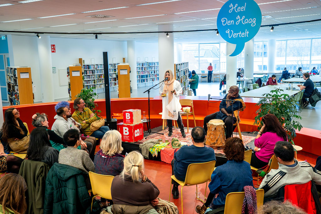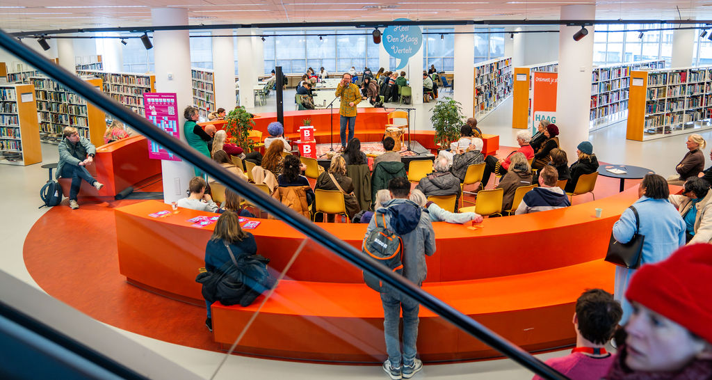 De eerste editie van het Verhalenfestival door en voor de stad – Heel Den Haag Vertelt – werd een succes: er kwamen zo’n 500 deelnemers op af en bibliotheekbezoekers bleven hangen. De diverse festival-onderdelen waren vrijwel allemaal volgeboekt.