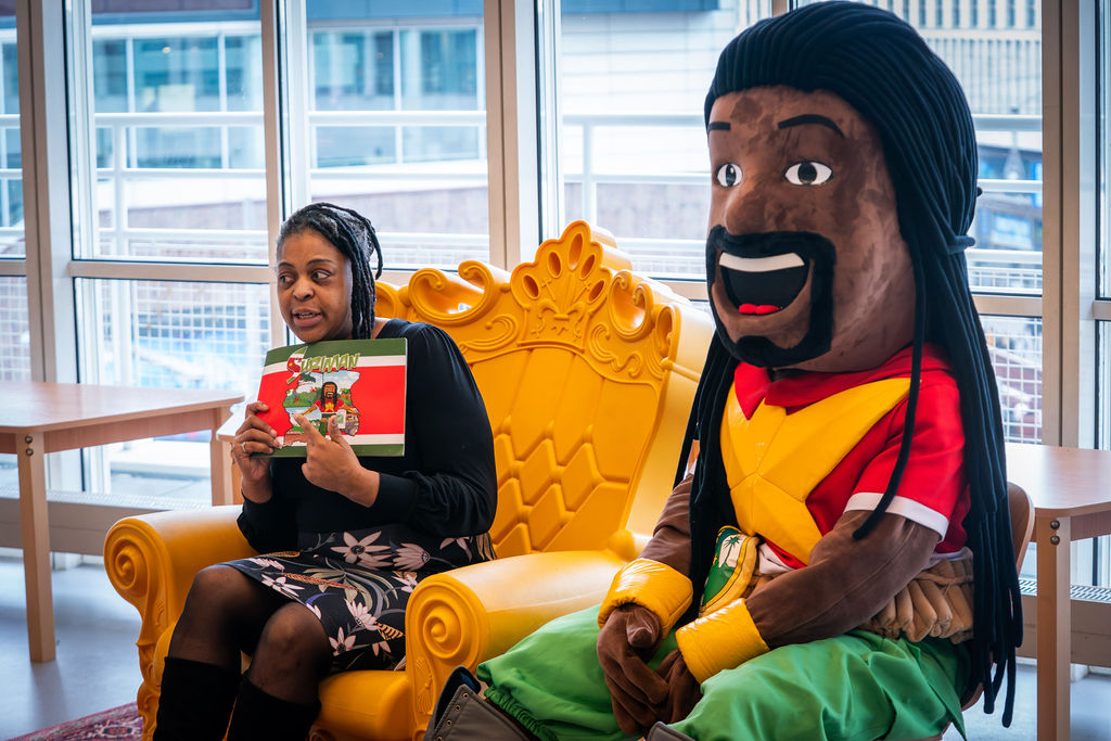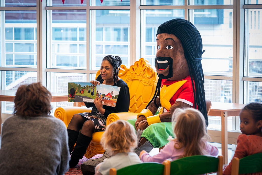 Op de derde verdieping waren er voor de jongste bezoekers vier interactieve vertelsessies. Er werd aandachtig geluisterd, onder andere naar Kamalia Thalaoui, die een boek schreef over een juf met een hoofddoek. En kinderen konden op de foto met de Surinaamse stripheld Suriman en over zijn ontstaan horen. Er was een Piep-show, met gebreide muizen. En een vertelling over een prinses die geen prinses wilde zijn.