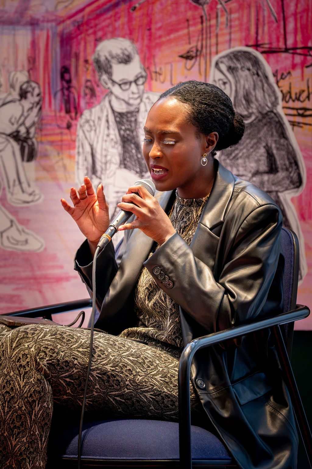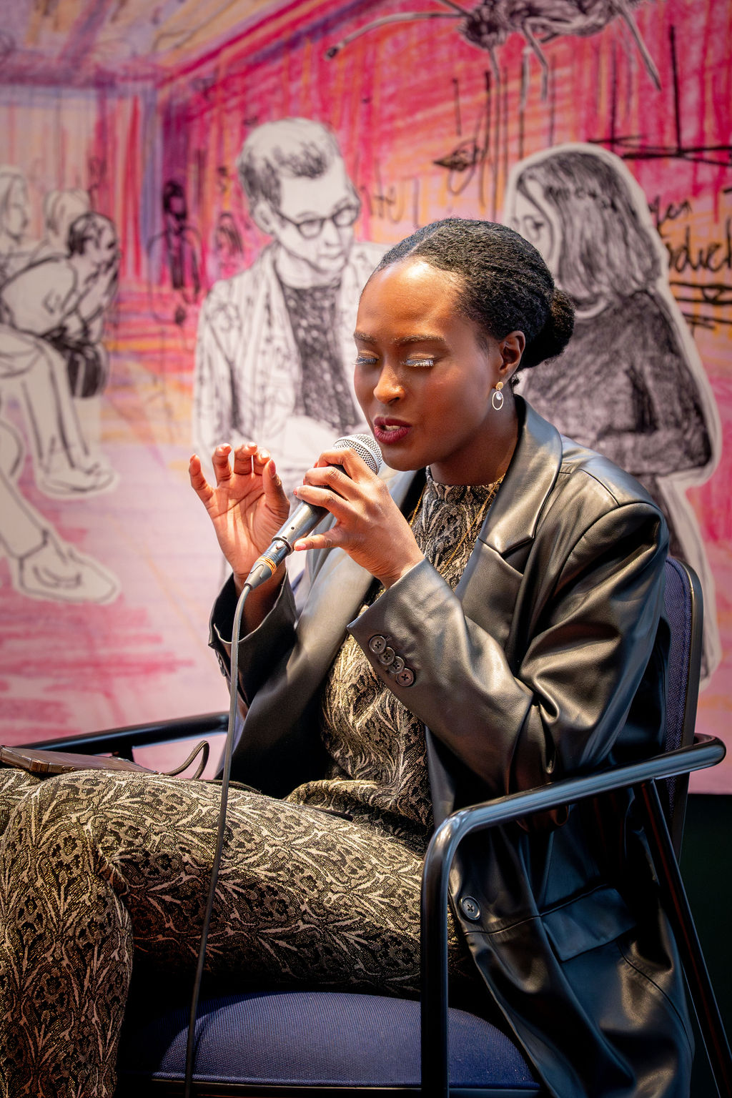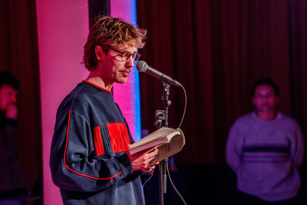 Aan het einde van de dag lieten op dit podium amateurschrijvers en -dichters van zich horen op het open podium van FFûh. Vooral jonge mensen- Engels en Nederlands-sprekend – stapten op het open podium met spoken word, verhalen en poëzie. Het was intiem, verrassend en leverde pareltjes van optredens op.