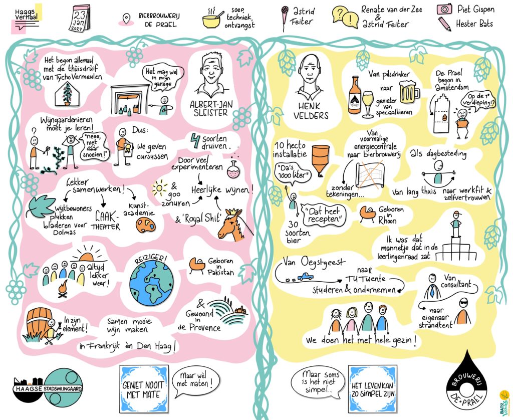 Hoe lekker het bier en de wijn ook is, het draait altijd om mensen. Dat bleek maar weer tijdens de hashtag#verhalenbijeenkomst van Haags Verhaal met de Haagse Stadswijngaard en Brouwerij de Prael.